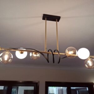 Candeeiro teto bolas caracol preto /ouro 8 lp