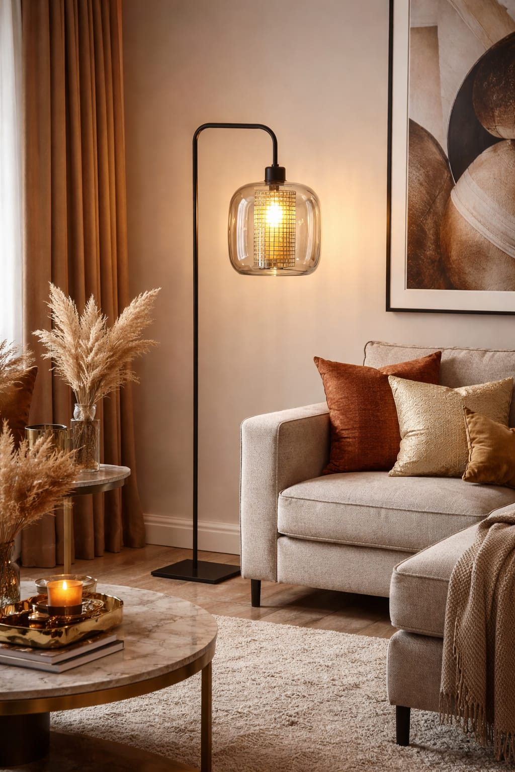 Candeeiro de pé lacado em preto.
