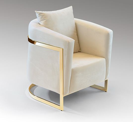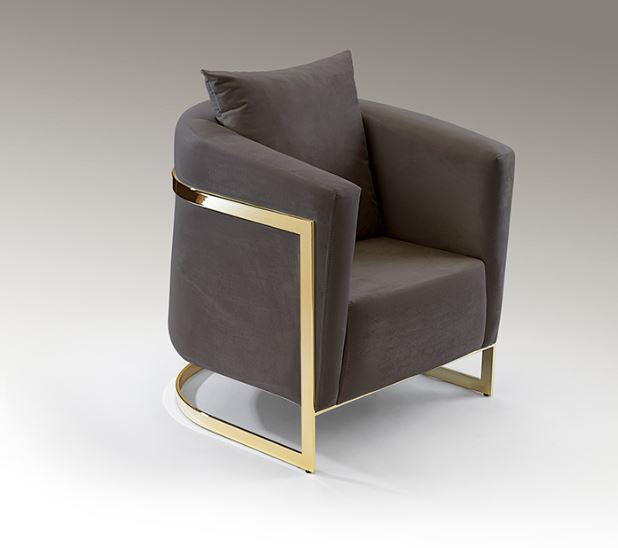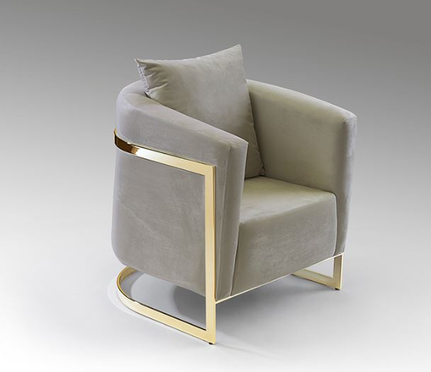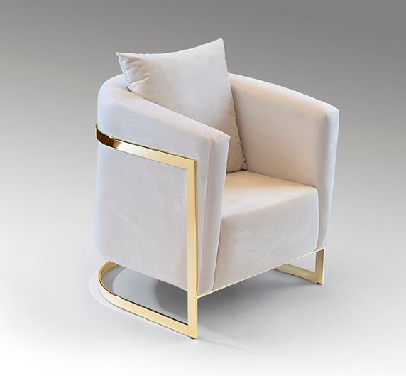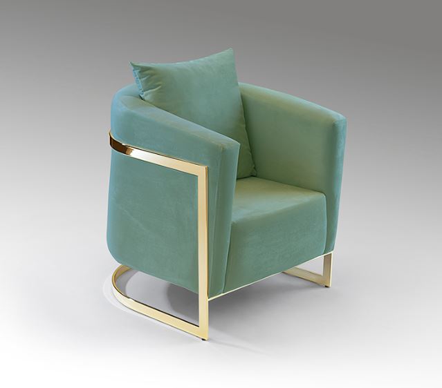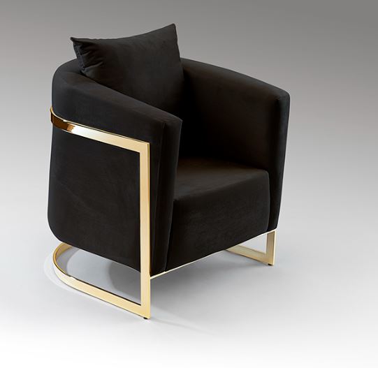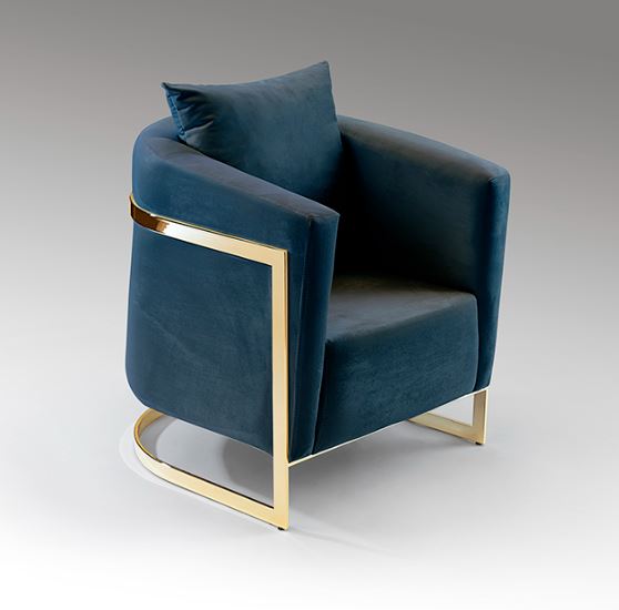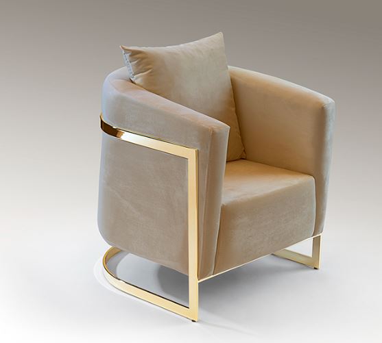 Poltrona, estofada em veludo (cor a escolher), almofada combinada.