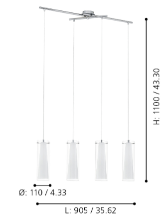4x lâmpada E27, não incluídas.