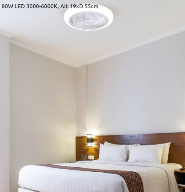 Ventoinha de tecto com luz, 5 palas e motor DC com 4 velocidades.